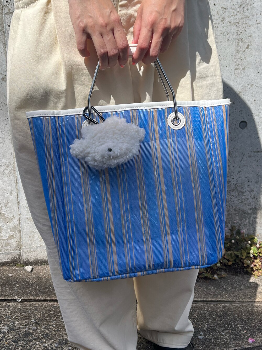 n m k( BIRTHDAY BAR 本部)のトートバッグ「メッシュ×PVC ストライプスクエアトートバッグ」を使ったコーディネート