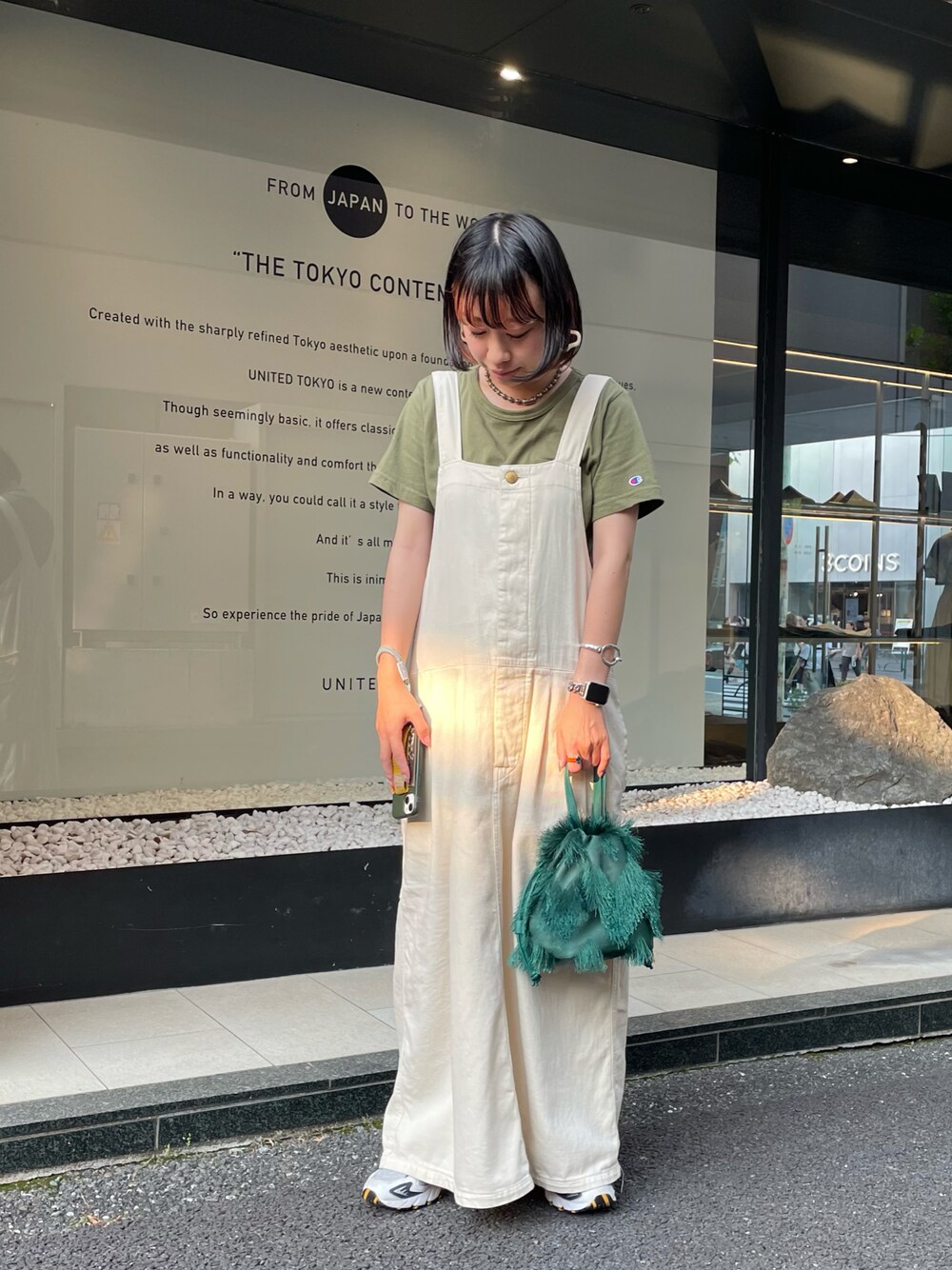 ポイントにグリーンを差し込んだコーデ。 コロンとフォルムがかわいいフリンジバッグはどんなコーデとも相性◎ スマホストラップはカミングスーンですがちょい見せ!『mentos』とBIRTHDAY BARのコラボアイテム!さりげないmentosロゴと、取り付けホルダーにフレーバーのロゴがついているのがポイント◎