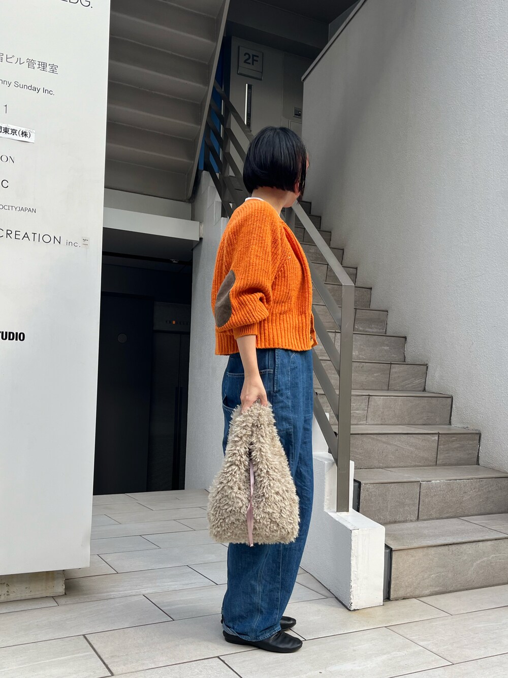 毎年人気のカタチのファーバッグが今年も登場しました! 私みたいにデニムでも、どんなコーデにも持ちやすいです◎ 季節感も出せるし、コーデのアクセントにもなります◎ 本体とリボンのバイカラーもポイント!
