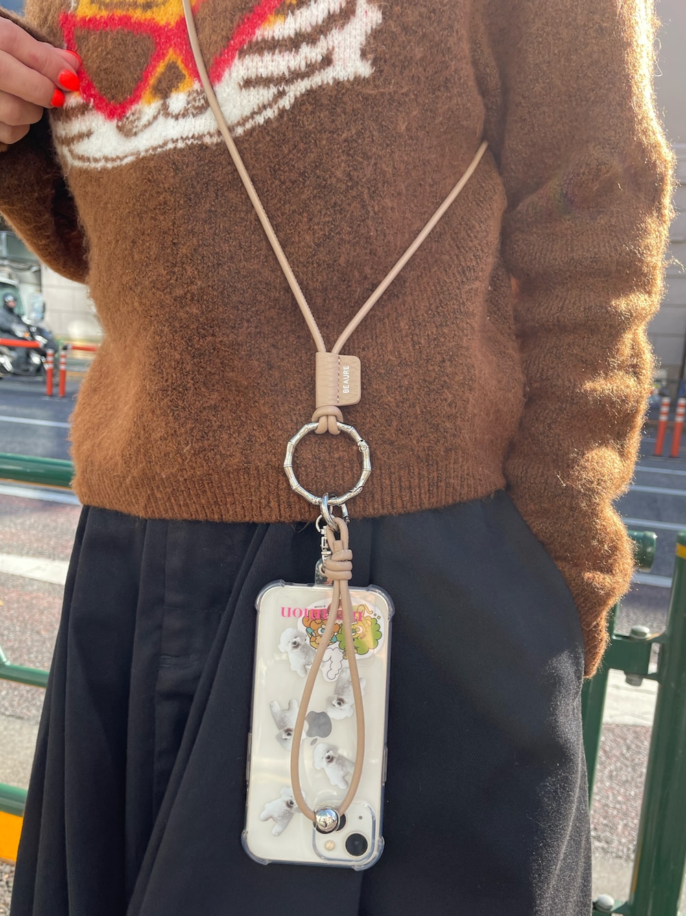 n m k( BIRTHDAY BAR 本部)のスマホグッズ「BEAURE カウレザー バンブーデザイン 金具モバイルストラップショルダー」を使ったコーディネート