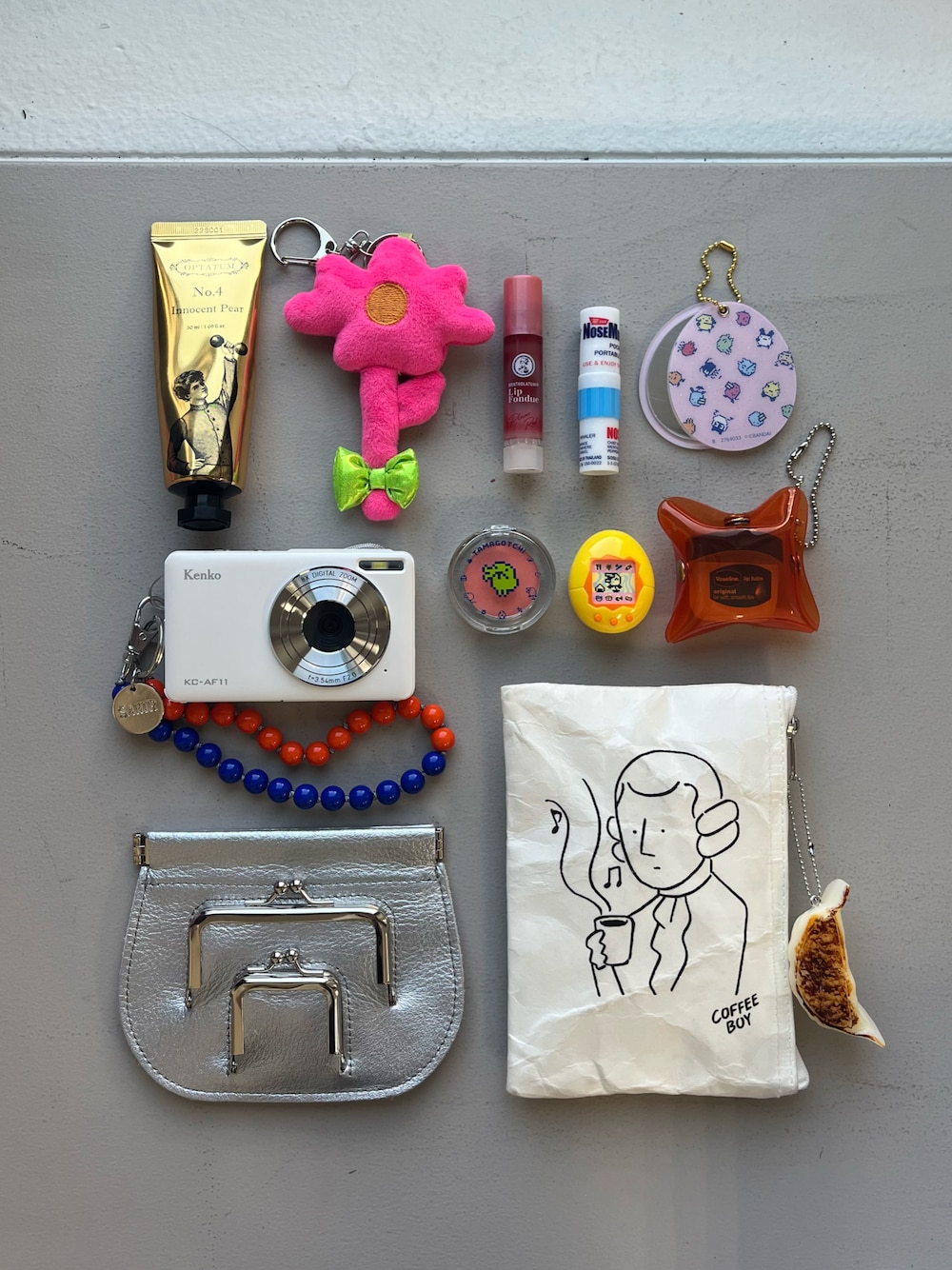 動画も撮れるコンパクトデジカメにSAHIRのストラップをつけてかわいくカスタマイズ◎ カラフルなバッグの中身はテンション上がる☺︎