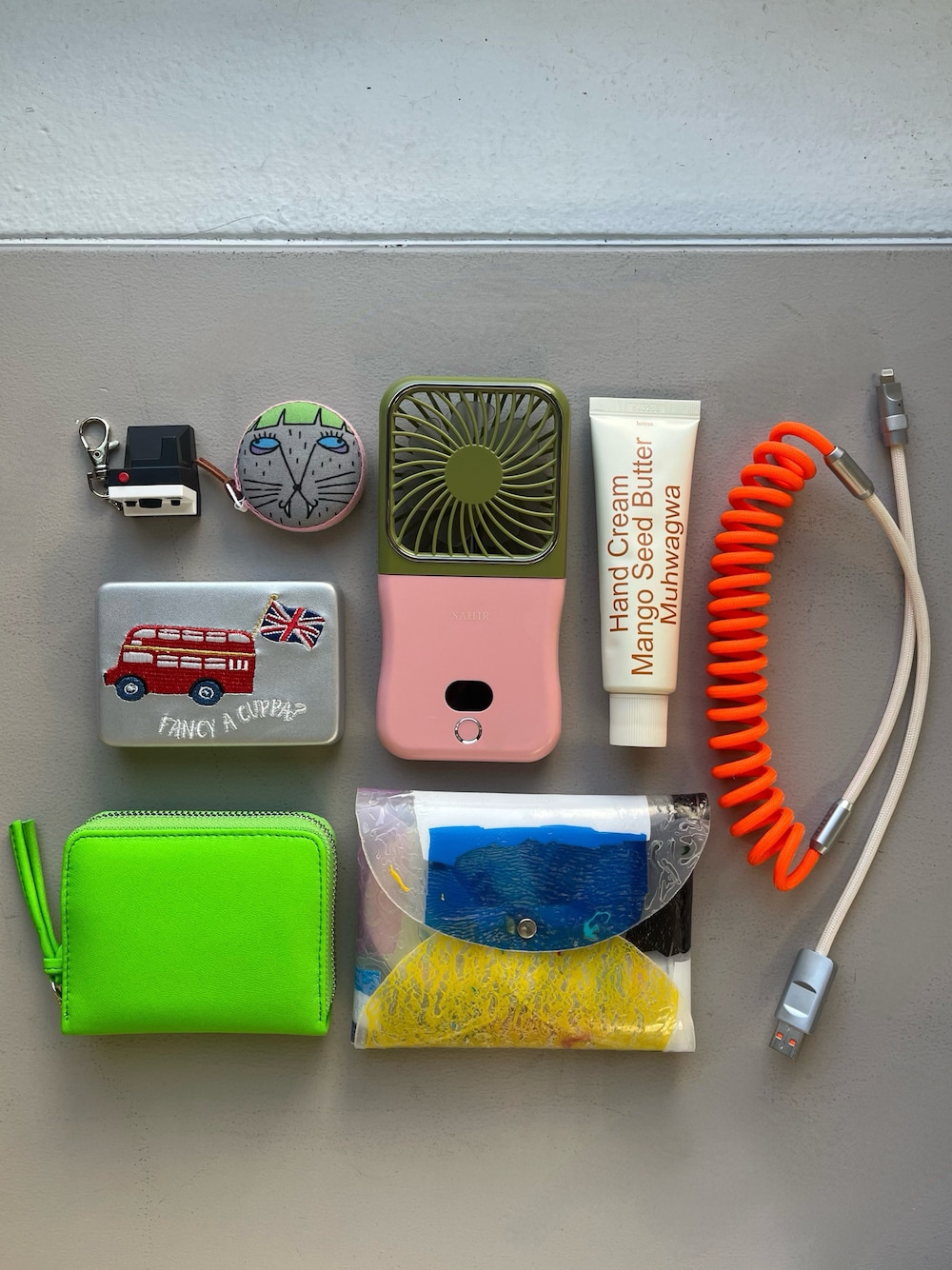 夏らしいカラフルアイテムたくさん! ポータブルファンはこんなにコンパクトなのに5役こなします! モバイルバッテリーにもなるので便利◎ 蛍光のお財布、個性的でかわいいだけでなくカードポケットがジャバラで見やすかったり、お札を折らずに収納できたり機能も抜群! かわいいだけじゃない、機能的なアイテムばかりです◎