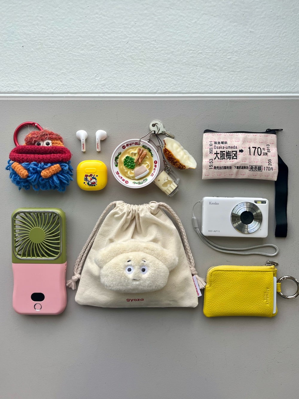 大阪に旅行にいくイメージのバッグの中身◎ 餃子のポーチは入荷したと思ったらあっという間に売り切れ😣 再入荷お楽しみに!