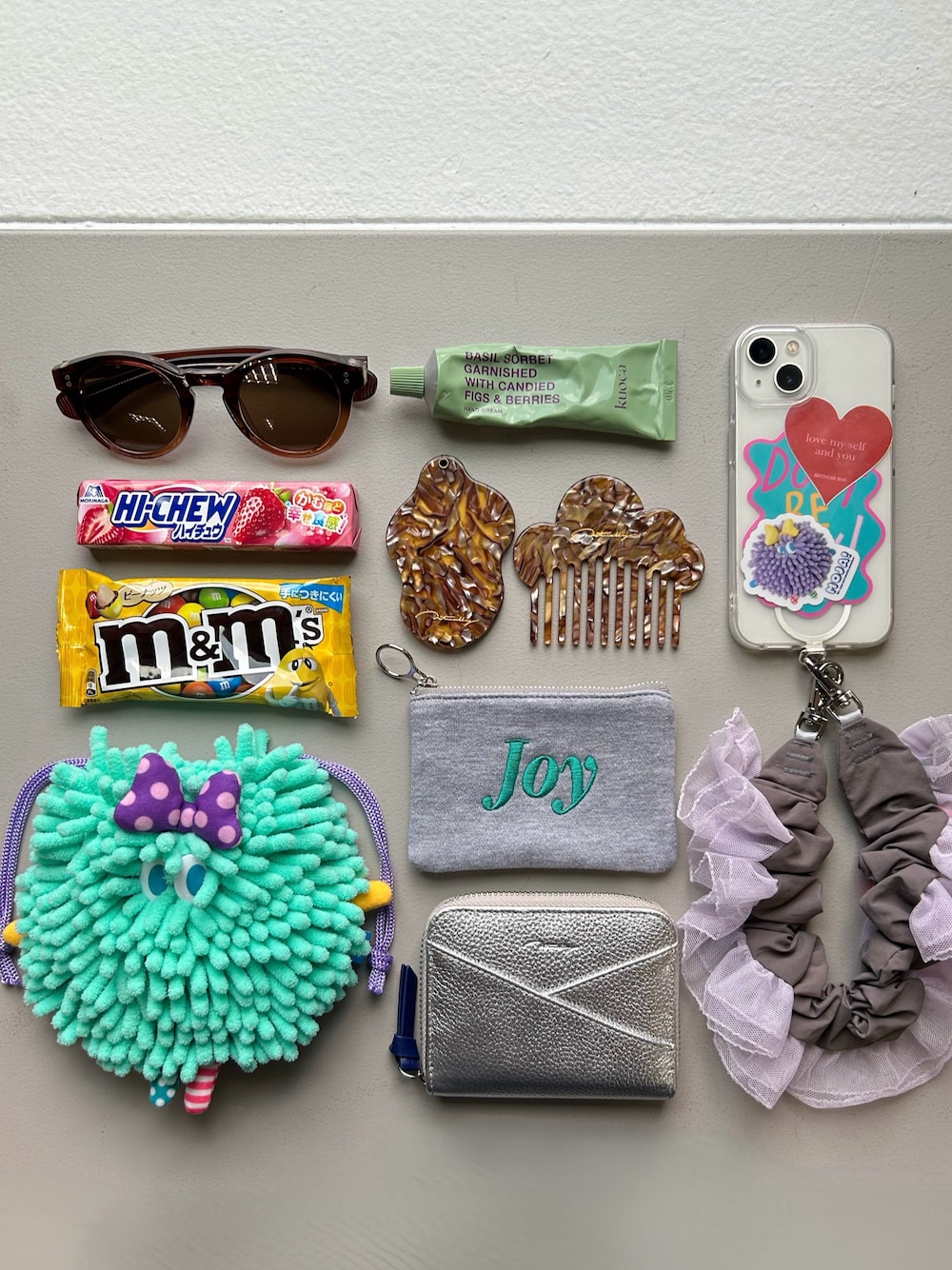 n m k( BIRTHDAY BAR 本部)のポーチ「MOJA!巾着」を使ったコーディネート