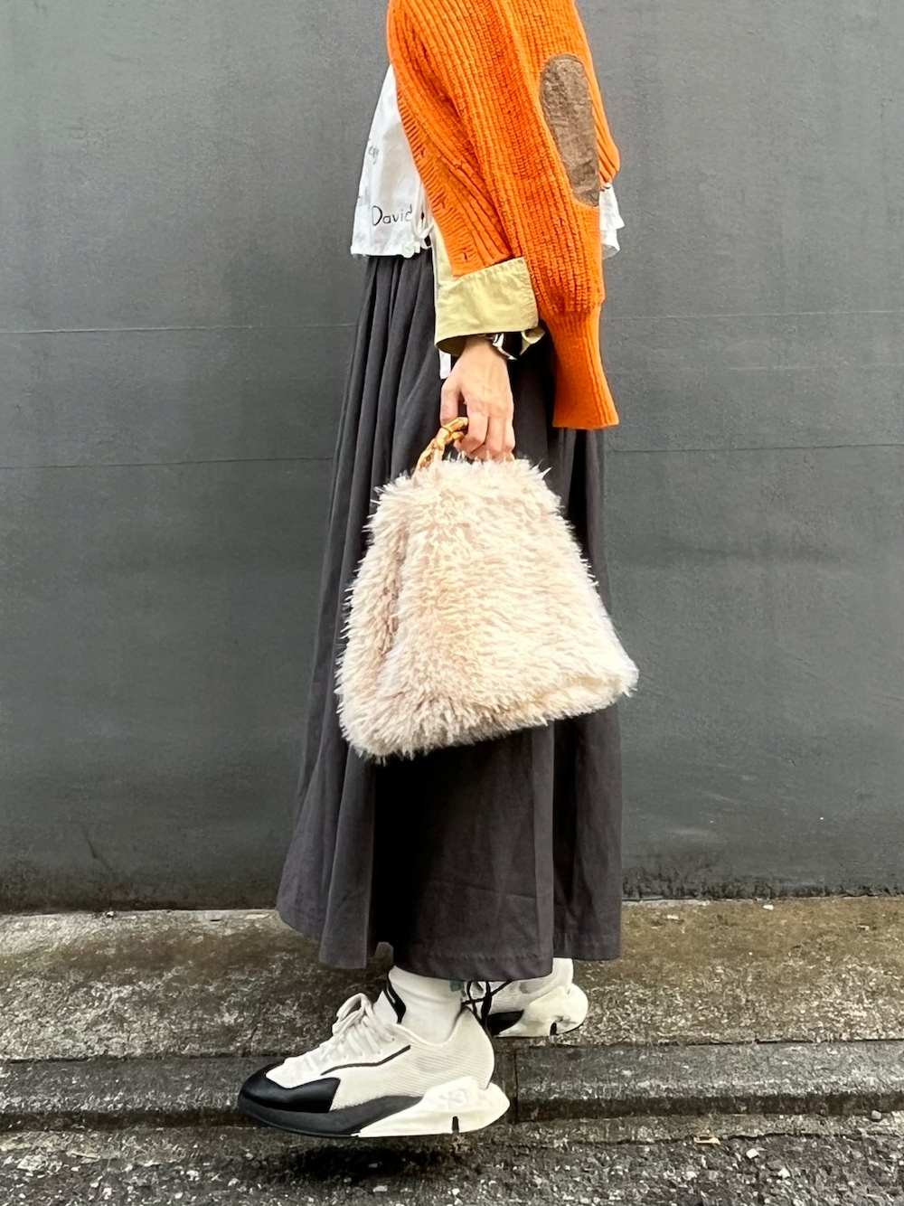ファー×バンブーハンドルの異素材個性派トートバッグ◎ コロンとしたフォルムがかわいい! カジュアルにもキレイめにも、どんなコーデにもマッチします◎