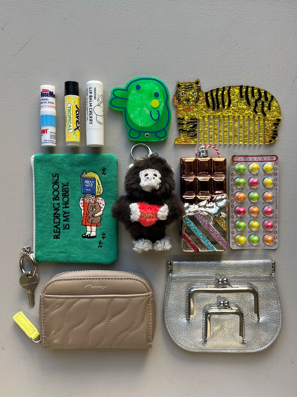 本革アイテムとユニークアイテムをミックスしたバッグの中身◎