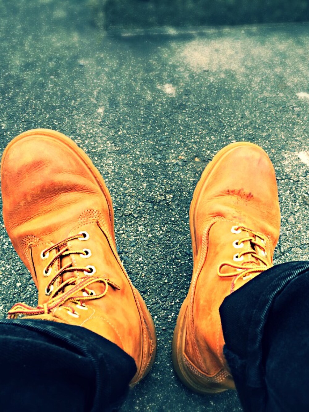 Timberlandのイエローブーツに オレンジのクリームを塗りたくって ヌバックの革を寝かせた結果