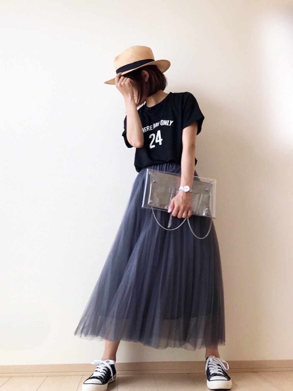 チュールスカートにロゴT、スニーカーあわせで甘辛ミックス♡