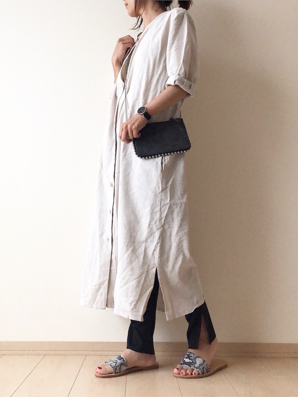 mayblueさんのリネンワンピに リブレギンス合わせ♡ Instagram → @nm.ks