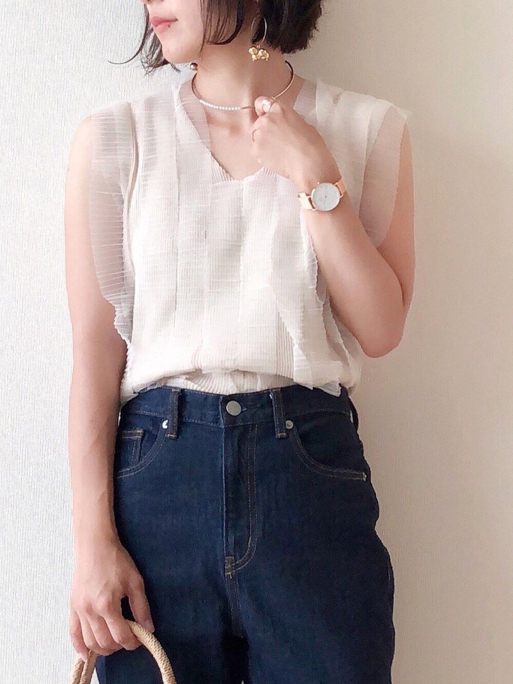 mysoenのチュールニットに GUのテーパードデニム合わせ♡ Instagram → @nm.ks