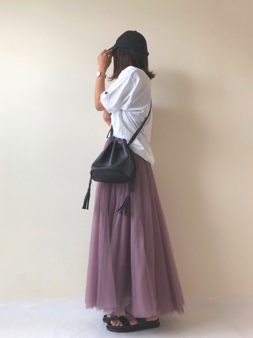 チャンピオンTにチュールスカート Instagram @nm.ks