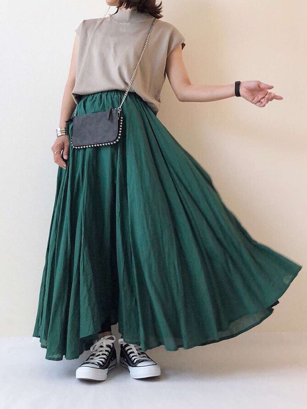 nm73のスカート「コットンボリュームフレアスカート」を使ったコーディネート