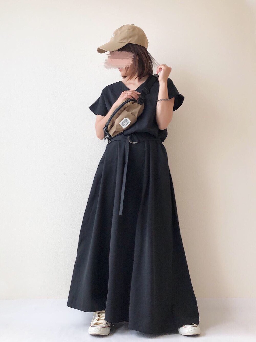 titivateのベルト付きワンピ キャップやスニーカーでカジュアル合わせ Instagram @nm.ks