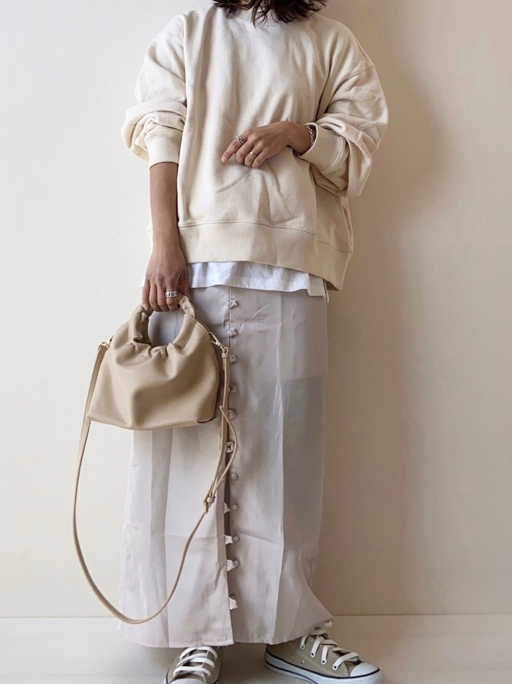 スウェットにサテンスカート♡ Instagram @nm.ks