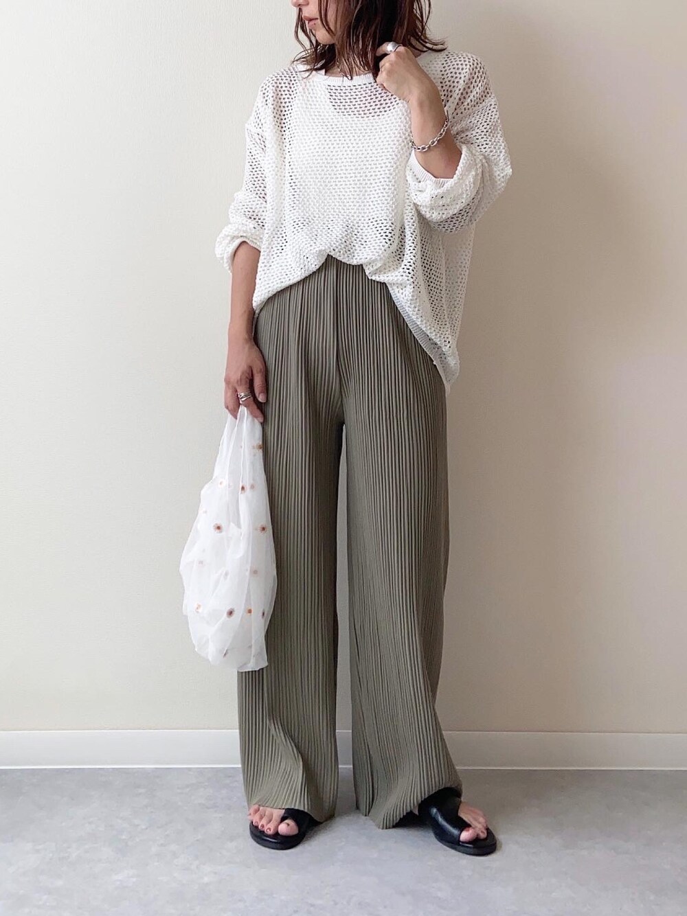 GUのメッシュオーバーサイズセーターに リブパン Instagram @nm.ks