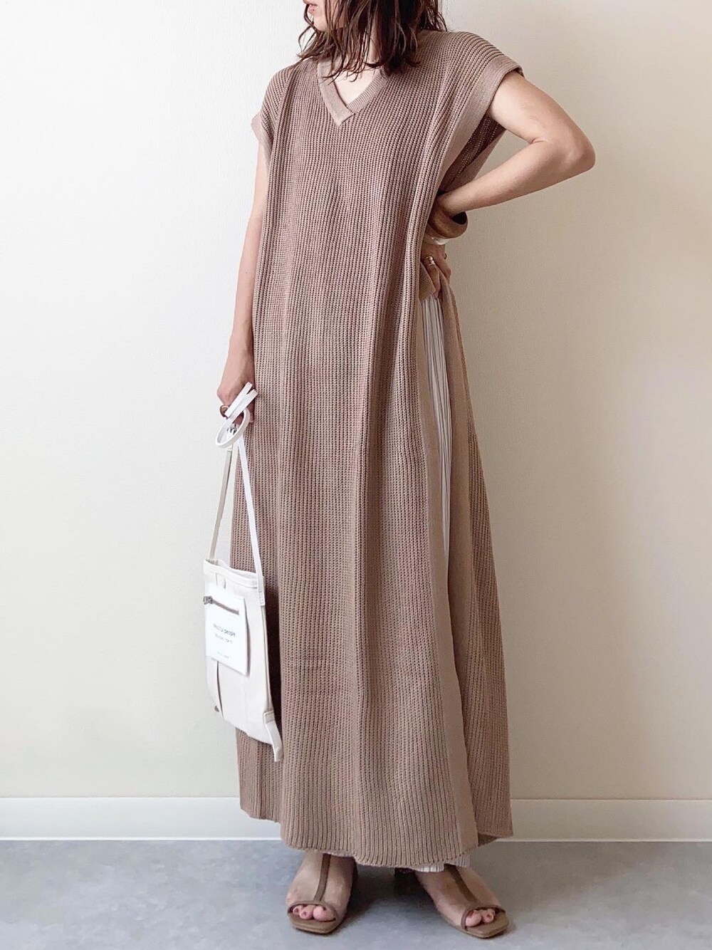 ロングニットベストが主役のコーデ♡ Instagram @nm.ks