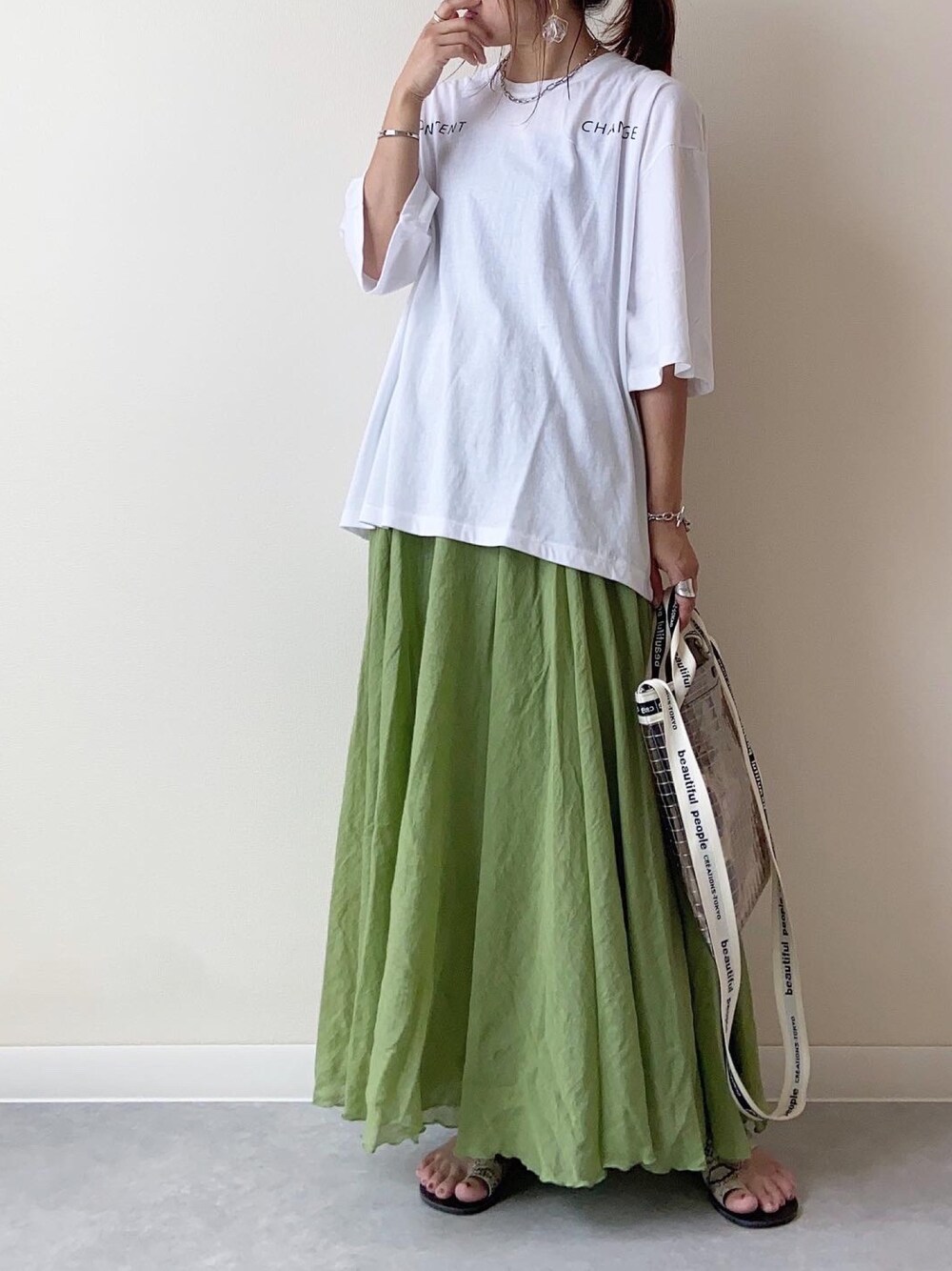 nm73のスカート「楊柳カラーフレアスカート」を使ったコーディネート