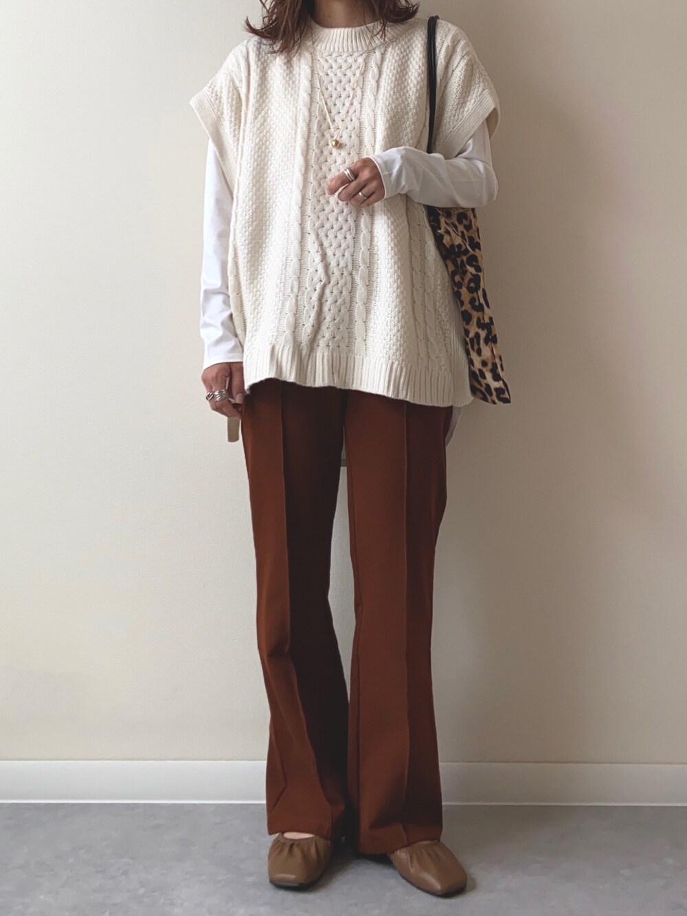 ニットベストもパンツもしまむらのプチプラコーデ♡ Instagram @nm.ks