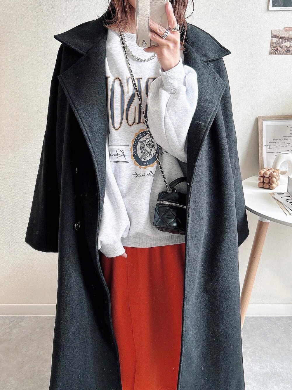 nm73のステンカラーコート「スタンドカラー3WAYロングコート / サイズ展開あり」を使ったコーディネート