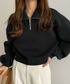 ハーフジップのスウェットは 裏起毛でぬくぬく♡