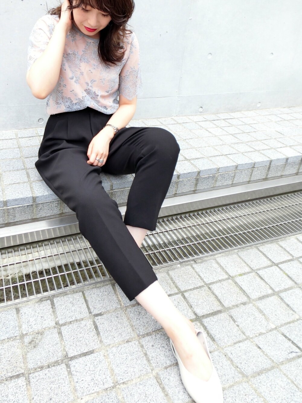 momocoのシャツ/ブラウス「ヘリンボンレースプルオーバー」を使ったコーディネート