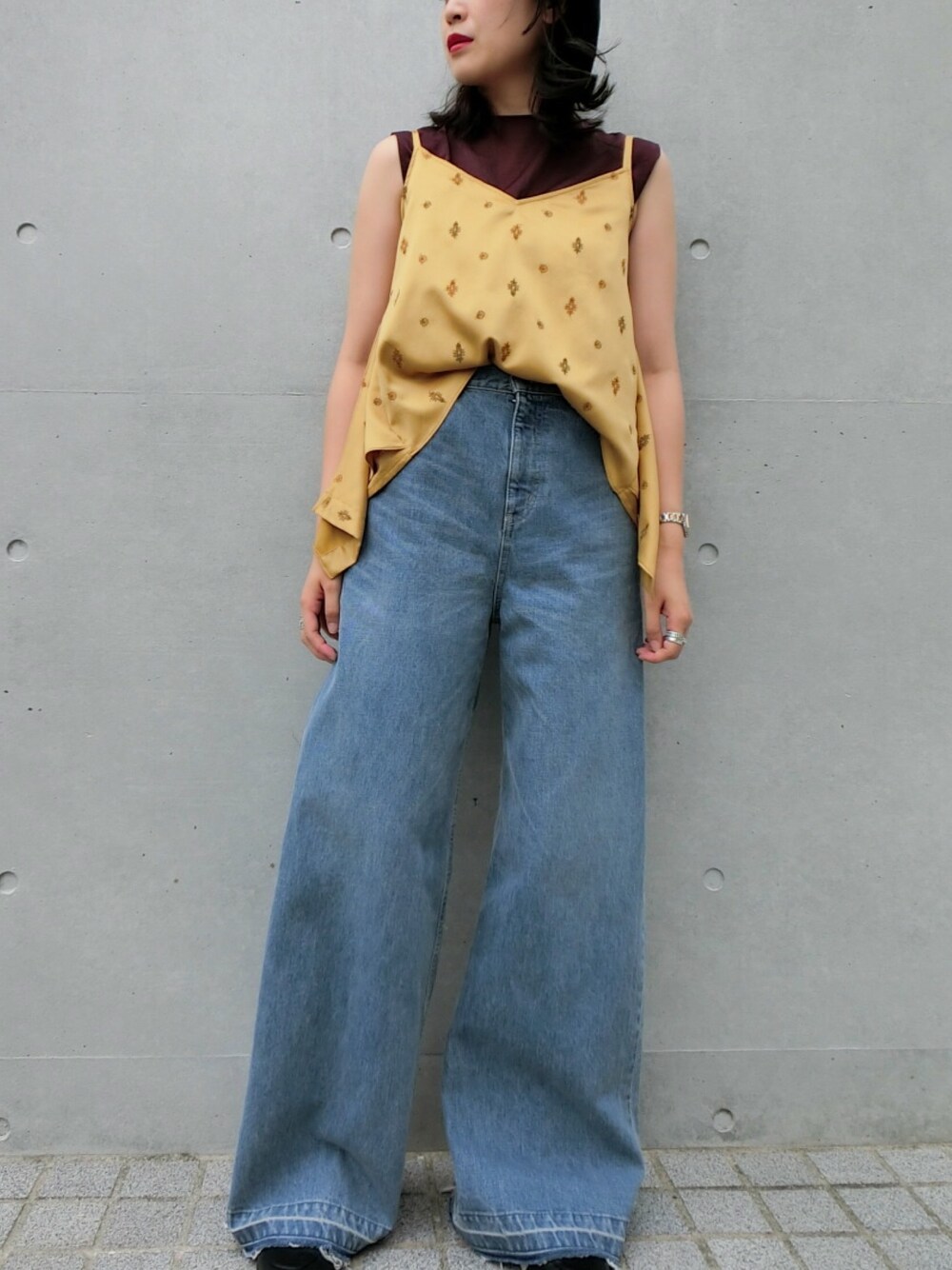 秋色を混ぜ込んだ夏コーデ 😈✨ だるんと長いワイドパンツでレトロ感もプラス。 . いつも見ていただき、ありがとうございます😊 インスタもやっているのでぜひフォローも🙏🏻❤️ @momoko_jima