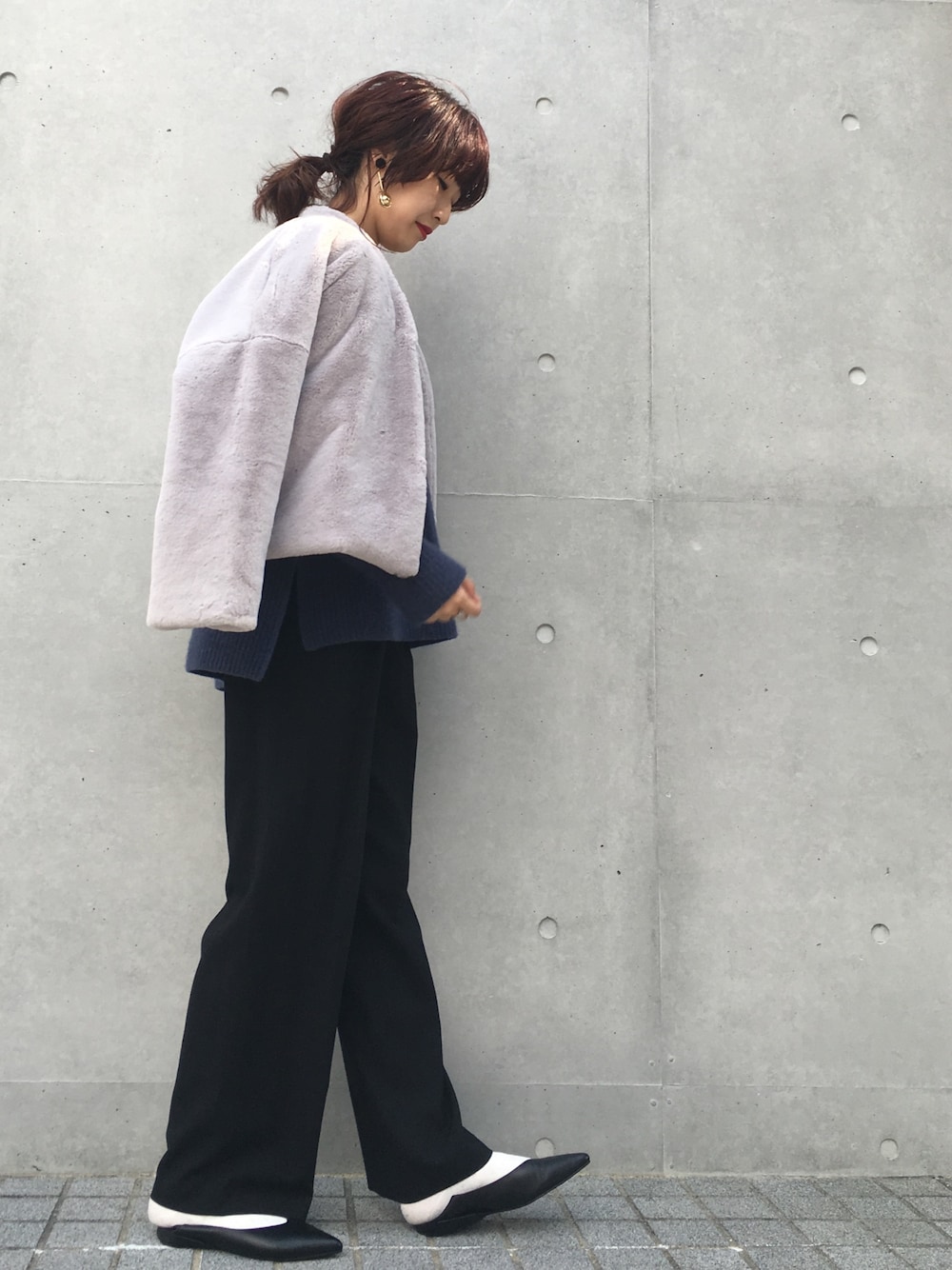 momocoのノーカラージャケット「エコファーショートコート」を使ったコーディネート