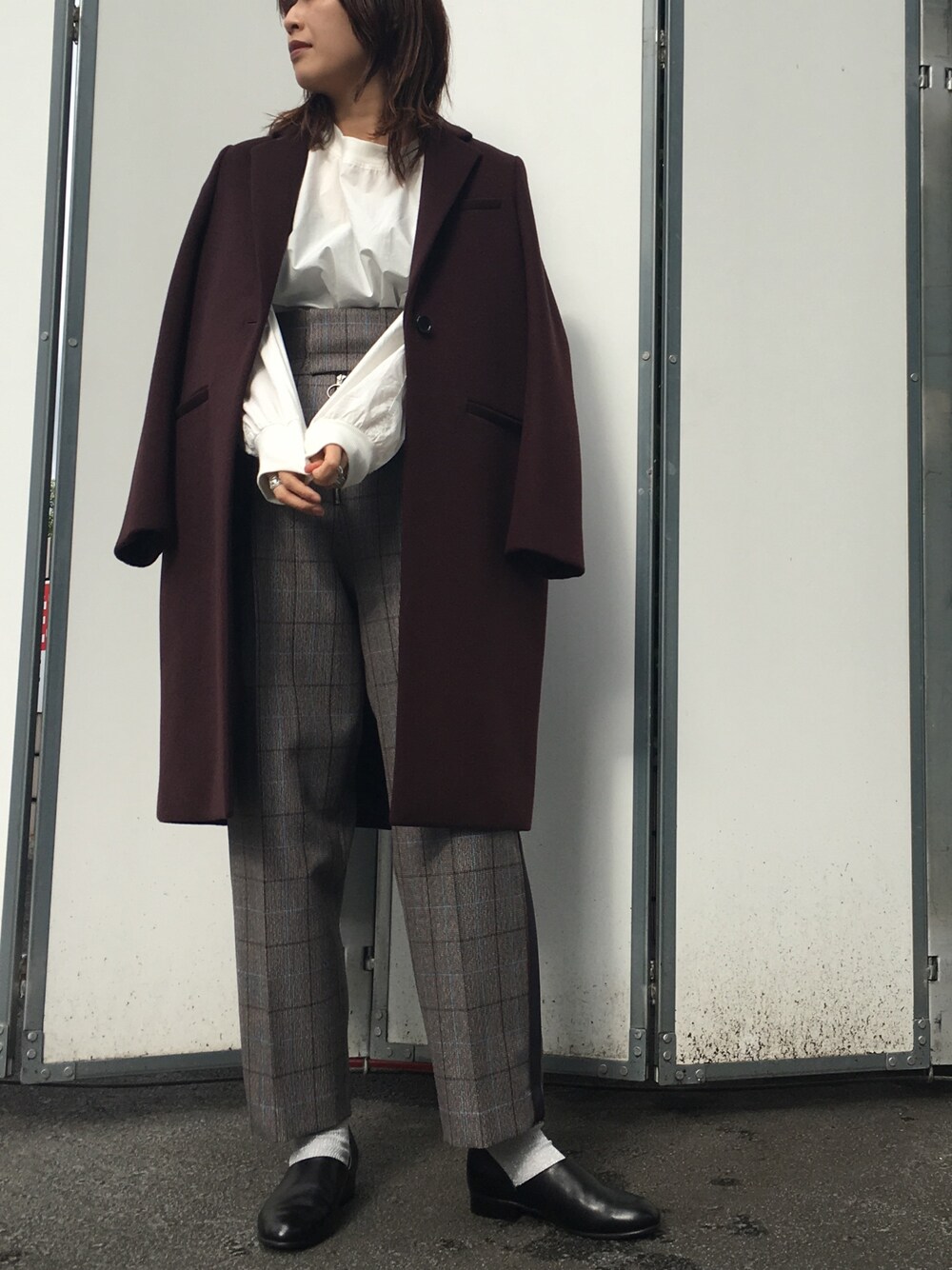 momocoのチェスターコート「Super140'sチェスターコート」を使ったコーディネート