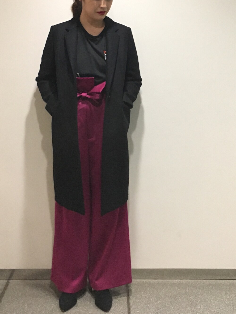 momocoのその他アウター「ベルテッドノーカラーガウンコート」を使ったコーディネート