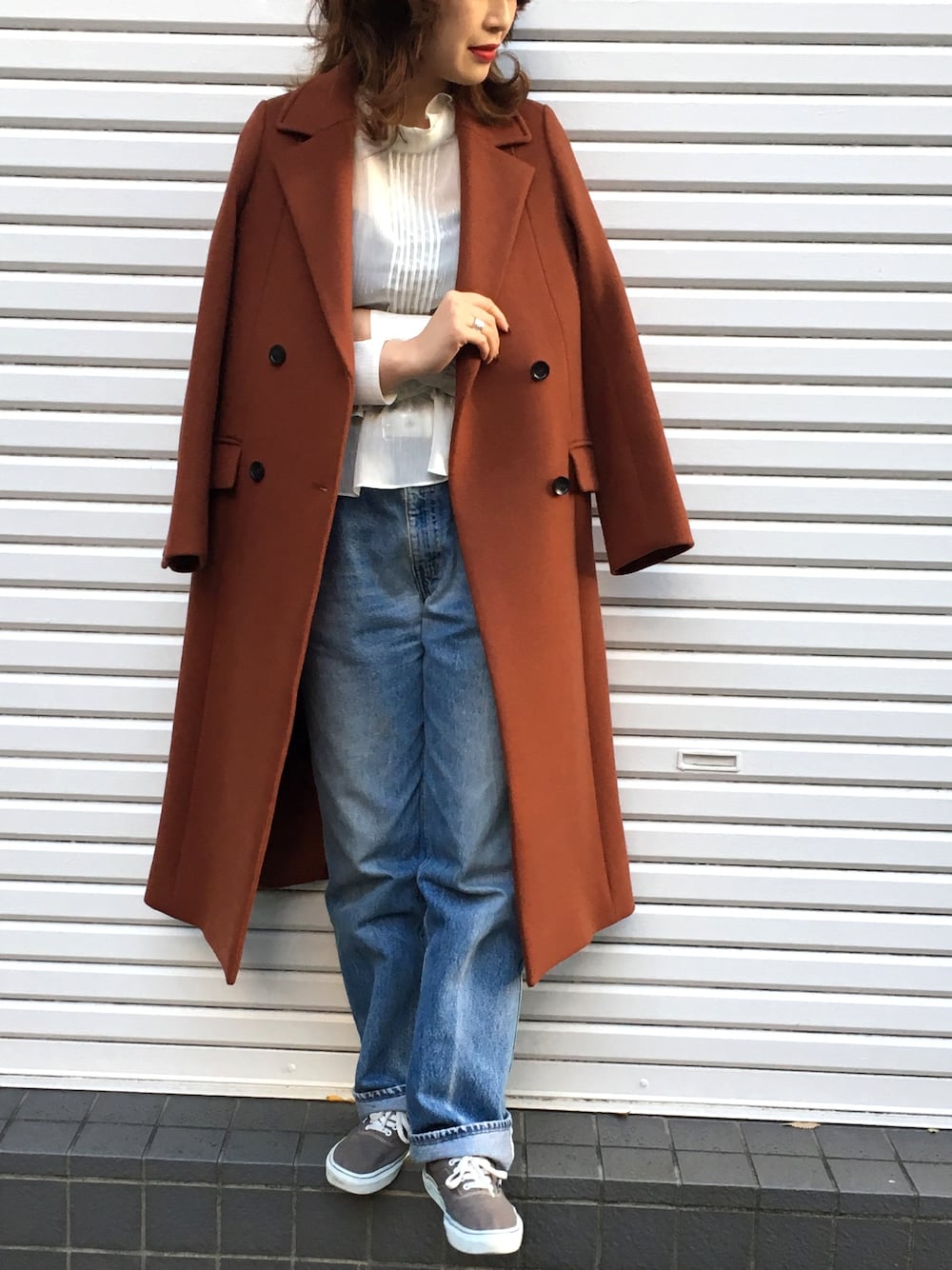momocoのチェスターコート「ダブルブレストコート」を使ったコーディネート