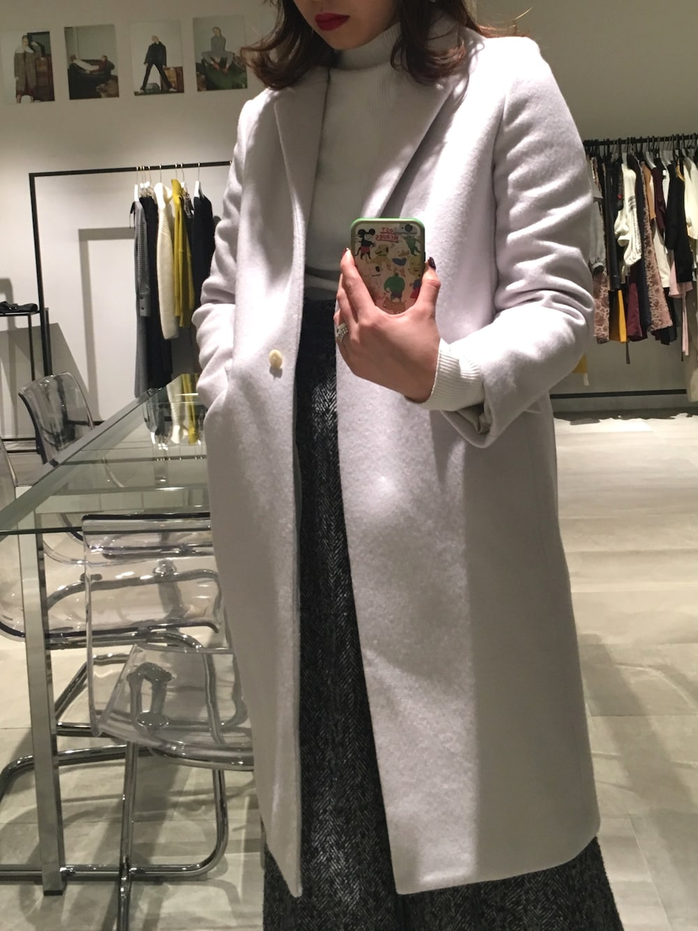 momocoのチェスターコート「ウィーブメルトンコクーンチェスターコート」を使ったコーディネート