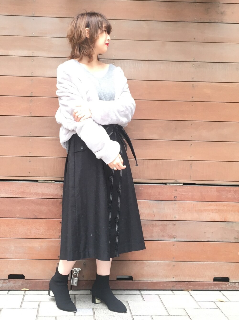トレンドのエコファーを羽織って、モードなデートコーディネート🤔✨ ワントーンでまとめて、オトナ女子な雰囲気に💕 . いつも見ていただき、ありがとうございます♥️ insta⇨⇨⇨@momoko_jima