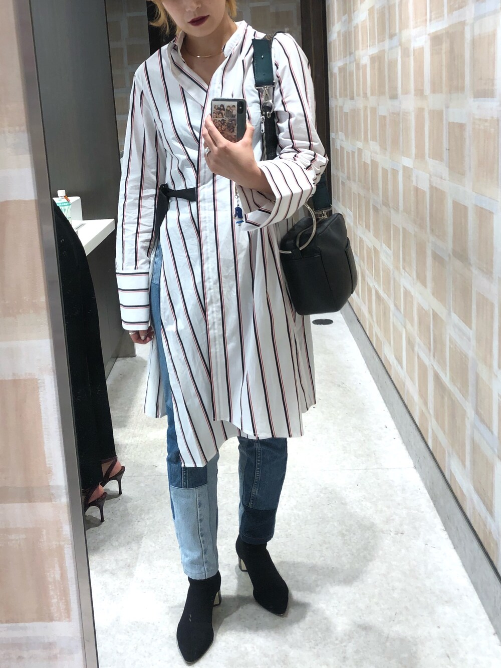 momocoのシャツ/ブラウス「Andersson Bell ラップストライプシャツ」を使ったコーディネート