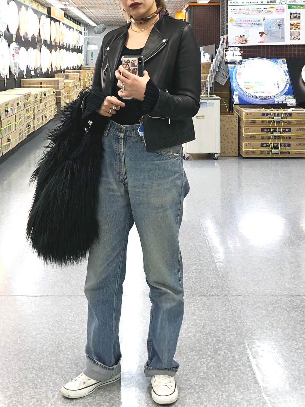 momocoのライダースジャケット「セミダブルシープレザー」を使ったコーディネート