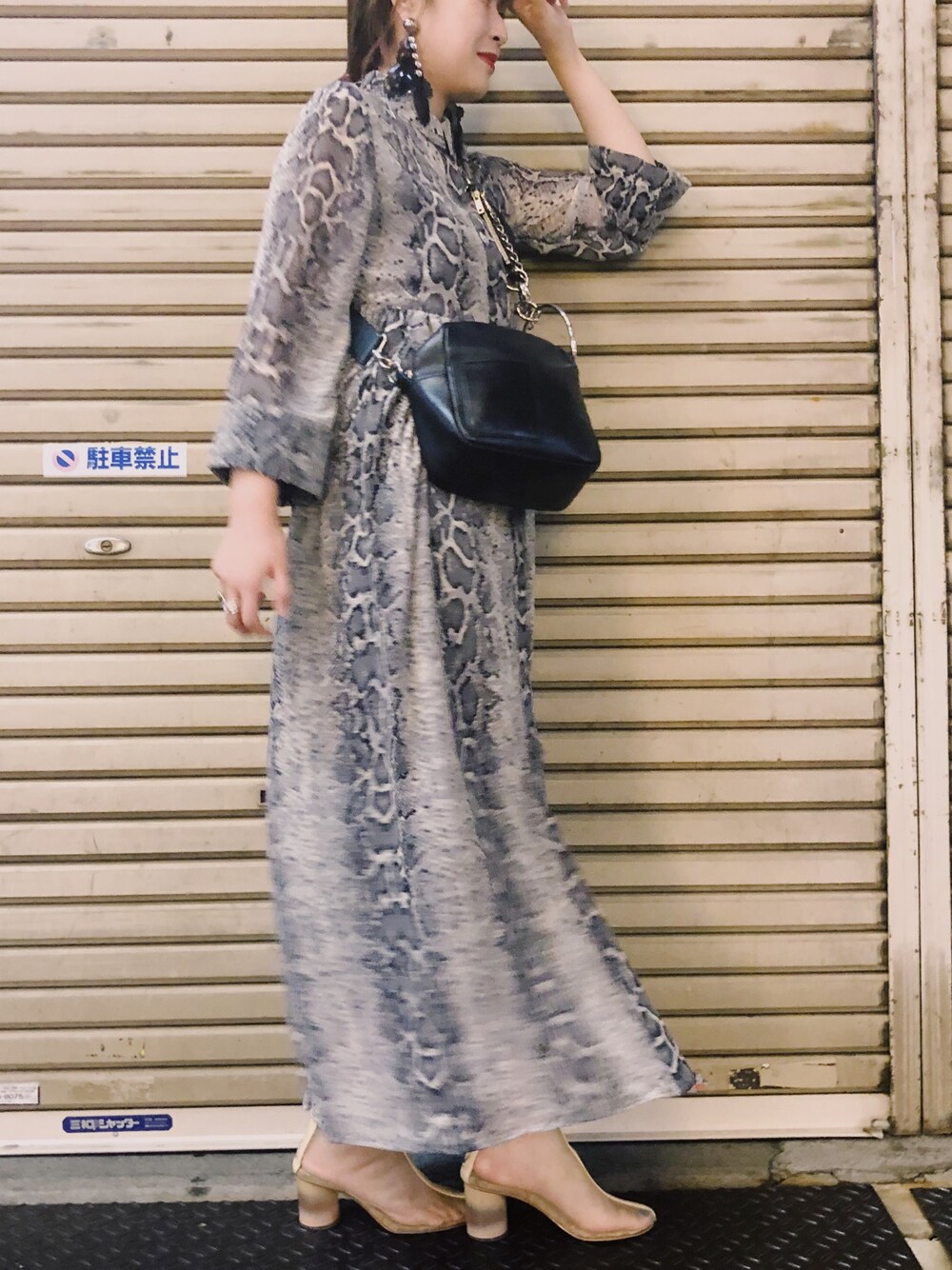 パイソン柄って一見強めにみえるから、足元はヌーディーにシースルーブーツで☺️💕 ジーナシスのこのワンピ楽可愛いからお気に入りです❤︎ . いつも見ていただき、ありがとうございます😊
