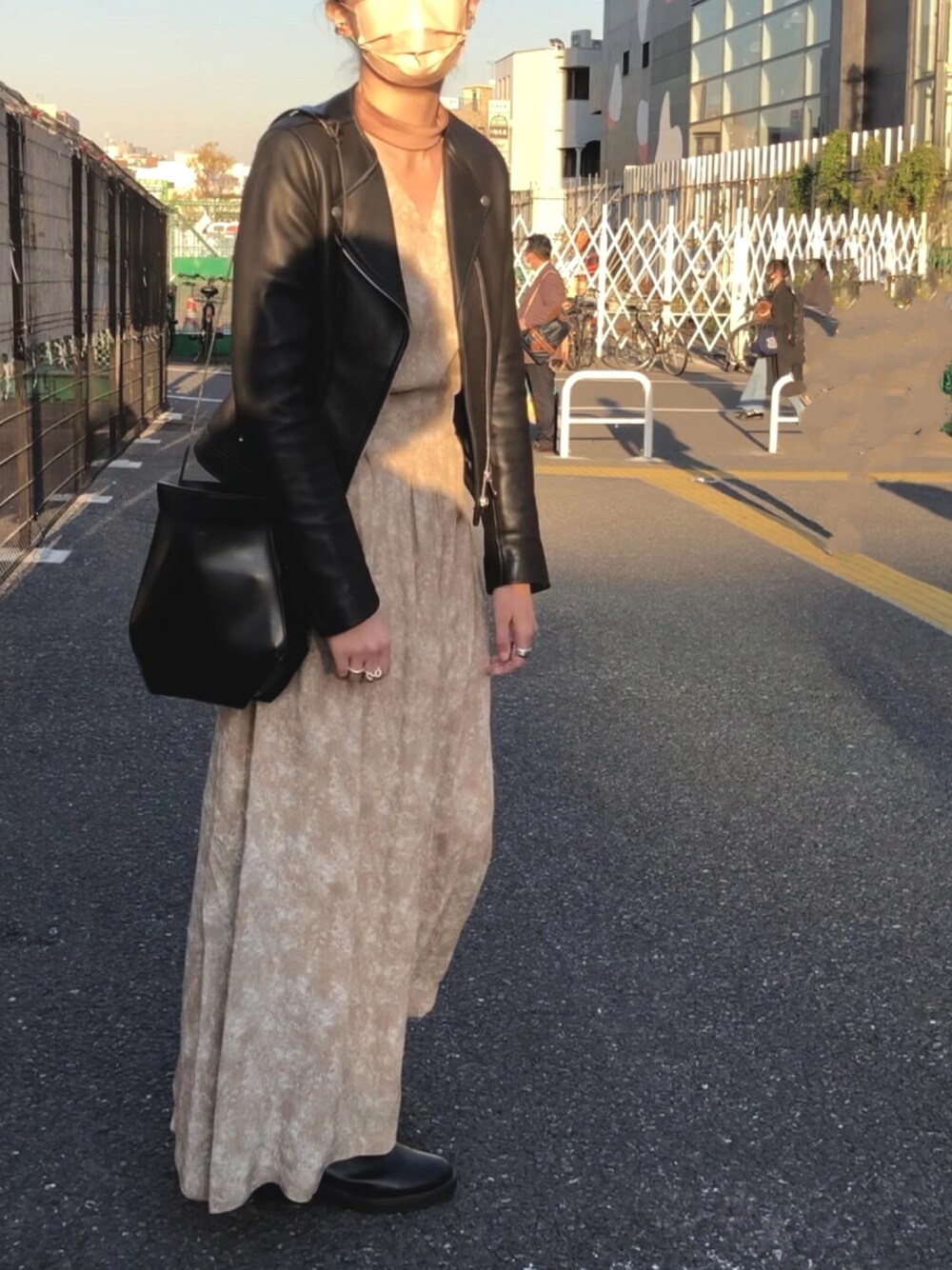レザー×ワンピで王道甘辛コーデに🍁🍂