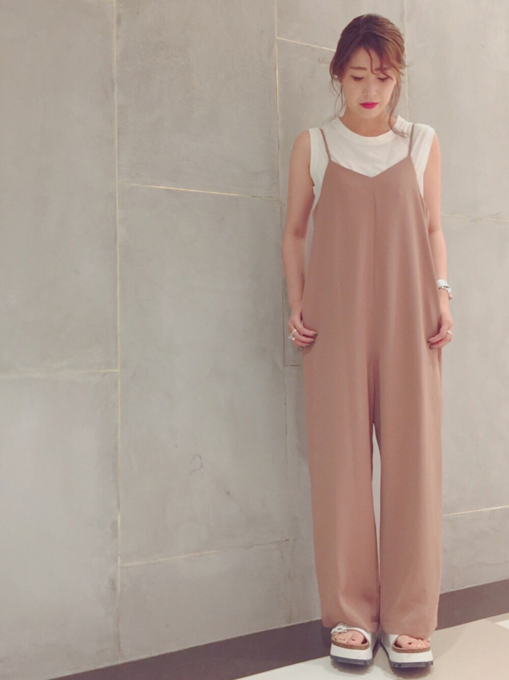 momocoのつなぎ/オールインワン「キャミソールオールインワン」を使ったコーディネート