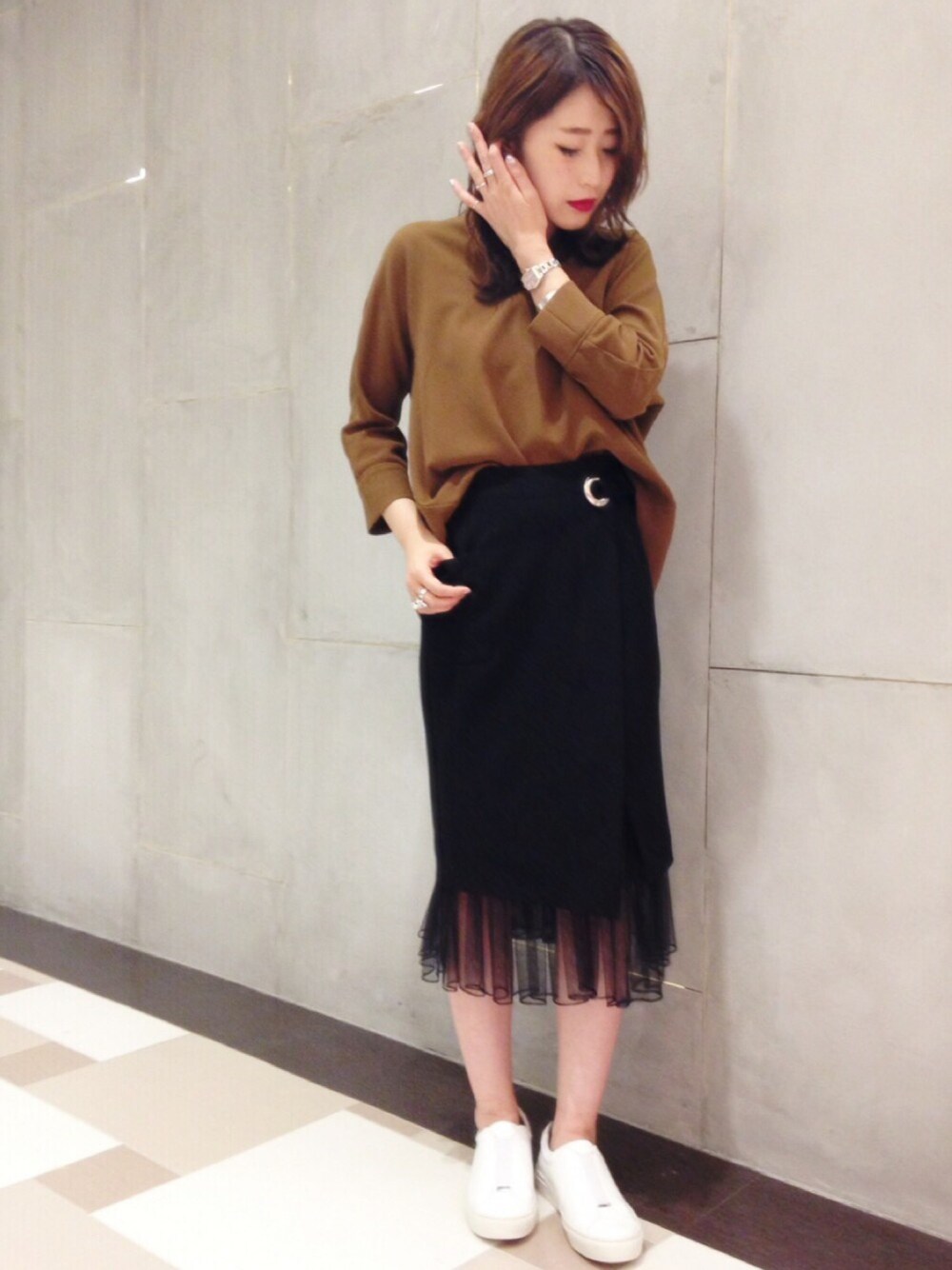全体をきれいめにまとめつつ、 足元はローカットのスニーカーではずしてみました😆 チュールのタイトスカートは、中のチュールと別々でも着れる2way仕様で着まわし力抜群です☺️💓 ブラック×ブラウン の色味、すごくいいですよね😍❤️(笑) 個人的に中々きております、、(笑) . いつも見ていただきありがとうございます😁🙏🏻
