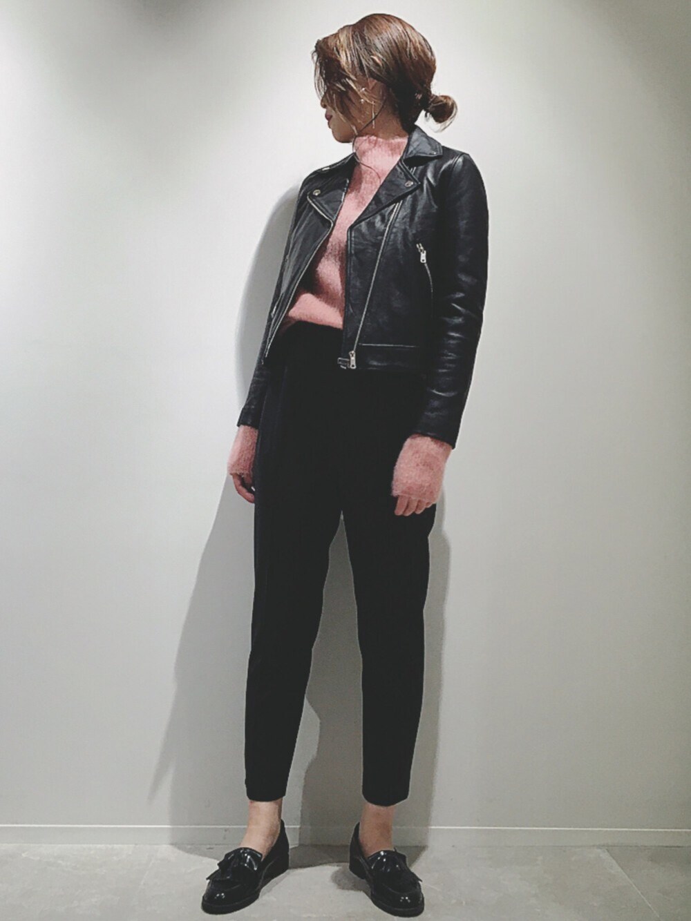 ブラック×ピンク で甘辛コーデ 👻⚡️💓💕 ライダースやっぱり着やすいのと、新作のモヘアのトップスがかわいすぎます、、 少し透け感もあって、女性らしくてステキです❤️ . いつも見ていただき、ありがとうございます☺️🙏🏻