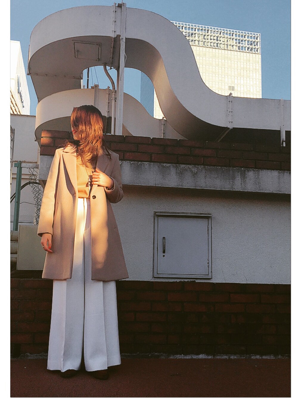 momocoのチェスターコート「Super100's Aラインチェスターコート」を使ったコーディネート