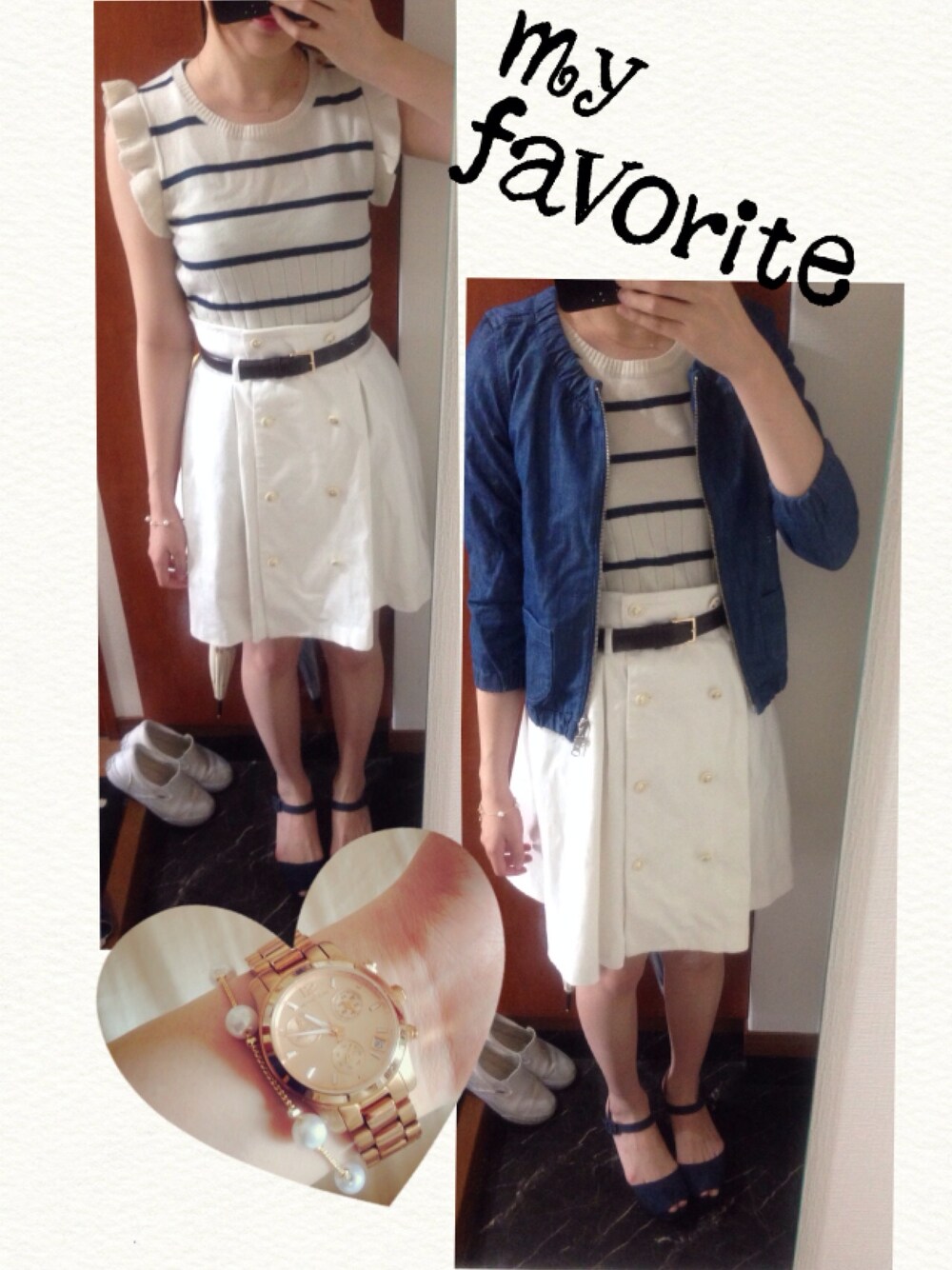 riのスカート「ベルト付きダブルボタンスカート」を使ったコーディネート