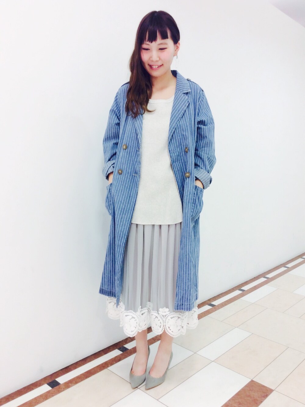 甘めのチュールスカートにデニムコートを合わせて甘辛MIX( ^ω^ )