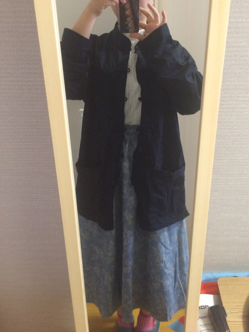 カンフーシャツを羽織りました。 花柄マキシは母親から。