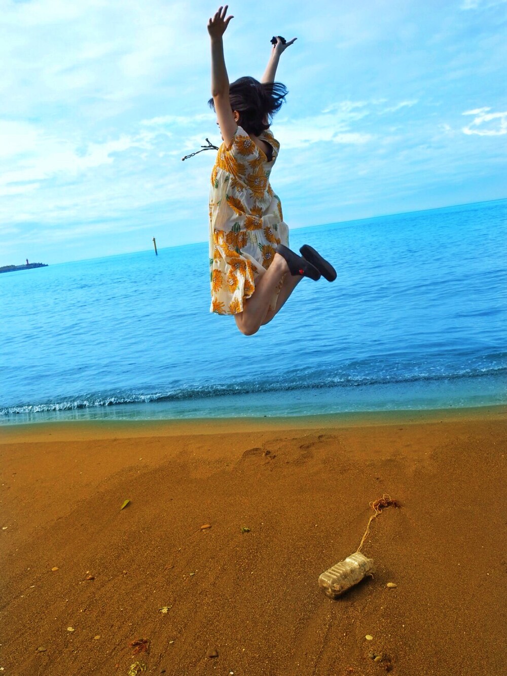 オレンジ系のワンピースを着用したレディースの夏コーディネートの1枚目の写真