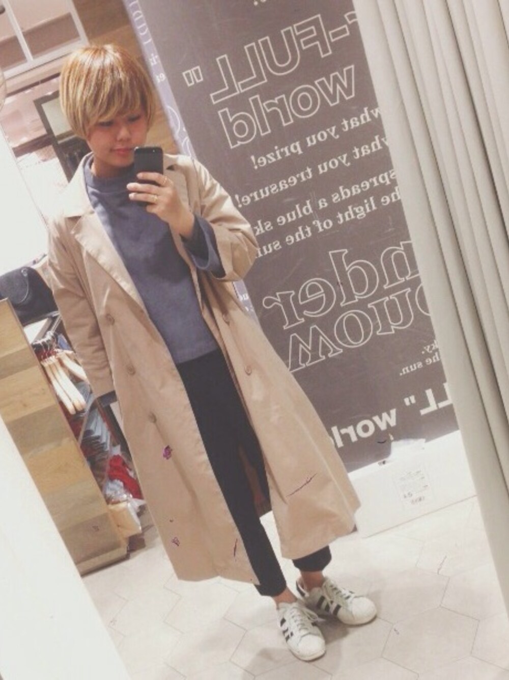 KBF CODE !!!! 本当に冬アウター着たくないから 春アウターを着てるけど寒い。(笑) このトレンチ形可愛いし最高🙆🙆 パンツもこの丈感が欲しかったから 手に入れた時最高でした🙆🙆(笑) はやく暖かくなーれ♪