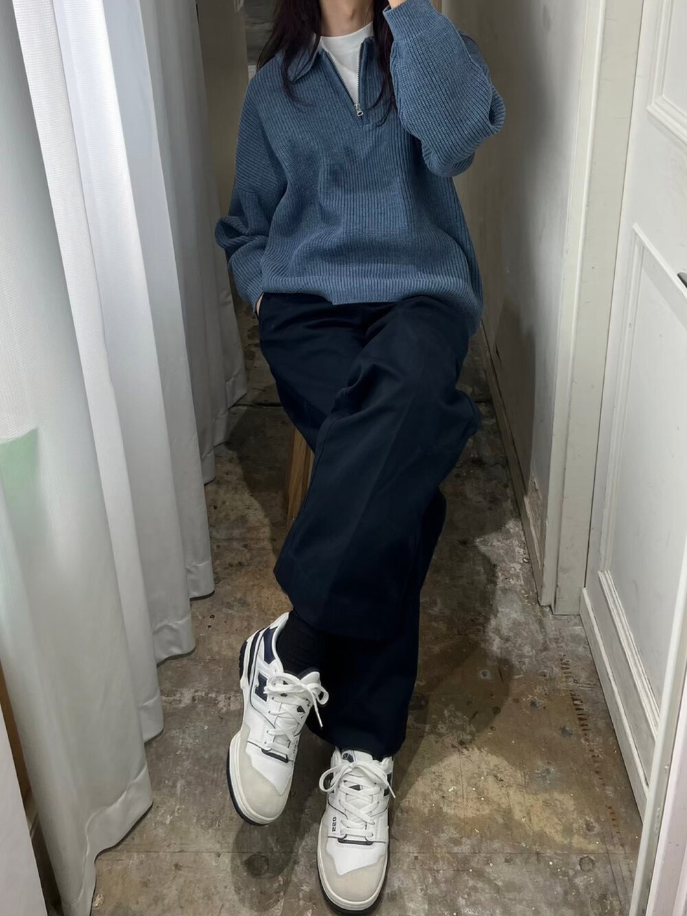 Never mind the XU / Chikashitsu+(Never mind the XU / Chikashitsu+)のポロシャツ「【Chikashitsu +/チカシツプラス】half zip knit polo/ハーフジップ リブ ニット ポロシャツ 長袖ニット」を使ったコーディネート