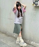 Never mind the XU / Chikashitsu+(Never mind the XU / Chikashitsu+)のデニムスカート「ストリートファッション TGNS ツーガンズ Water Washed Denim Long Skirts デニムスカート ロング」を使ったコーディネート