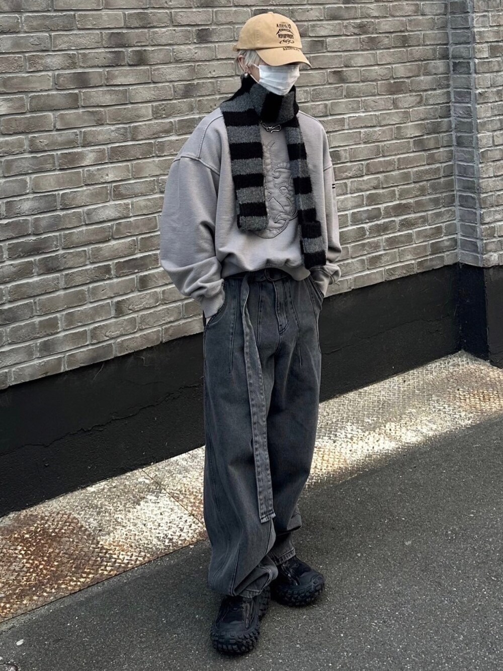 Never mind the XU / Chikashitsu+(Never mind the XU / Chikashitsu+)のスウェット「韓国ブランド AJOBYAJO アジョバイアジョ Sporty Logo Applique Washed Sweatshirt オーバーサイズ スウェットシャツ ロゴスウェット トレーナー 長袖トップス 韓国ストリート 韓国ファッション」を使ったコーディネート