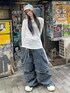 Never mind the XU / Chikashitsu+(Never mind the XU / Chikashitsu+)のデニムパンツ「ストリートファッション XU エックスユー pocket cargo denim pants 3 デニムパンツ カーゴパンツ カーゴデニム マルチポケット ビンテージ風ジーンズ オーバーサイズ 韓国ファッション 韓国ストリート」を使ったコーディネート