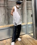 Never mind the XU / Chikashitsu+(Never mind the XU / Chikashitsu+)のタンクトップ「【XU/エックスユー】damage sleeveless/ダメージスリーブレス タンクトップ 重ね着 レイヤード」を使ったコーディネート
